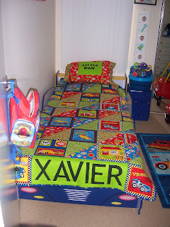 Xaviers quilt and pillow for his secound birthday this post should come before the Christmas one(Did I tell you that I am new at this!!!!)